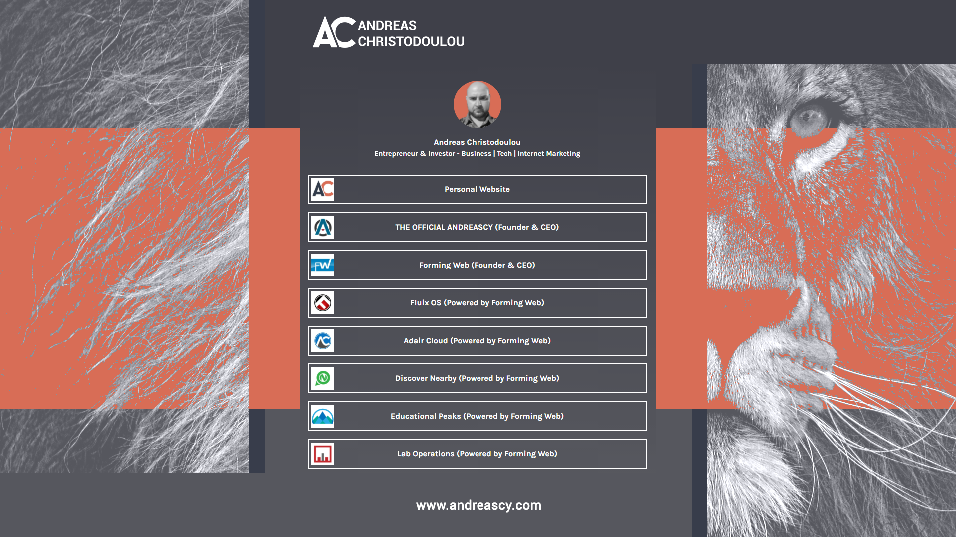Andreas Christodoulou, best known as “andreascy”, is an entrepreneur based in Belgium, with a strong sense of purpose, vision, and personal control. He collaborates with companies and other driven, high-achieving individuals, delivering products and services designed to improve business and people’s lives. He is driven by their overall success.